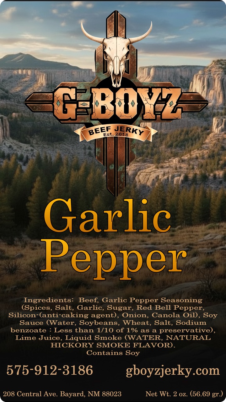 Small‑batch jerky, big flavor. Our Garlic Pepper beef jerky is crafted from 100% Pure Black Angus for a tender bite and rich, beefy taste. Pepper with a hint of garlic. Made in New Mexico, it balances clean ingredients with a satisfying chew that keeps you reaching for another piece.